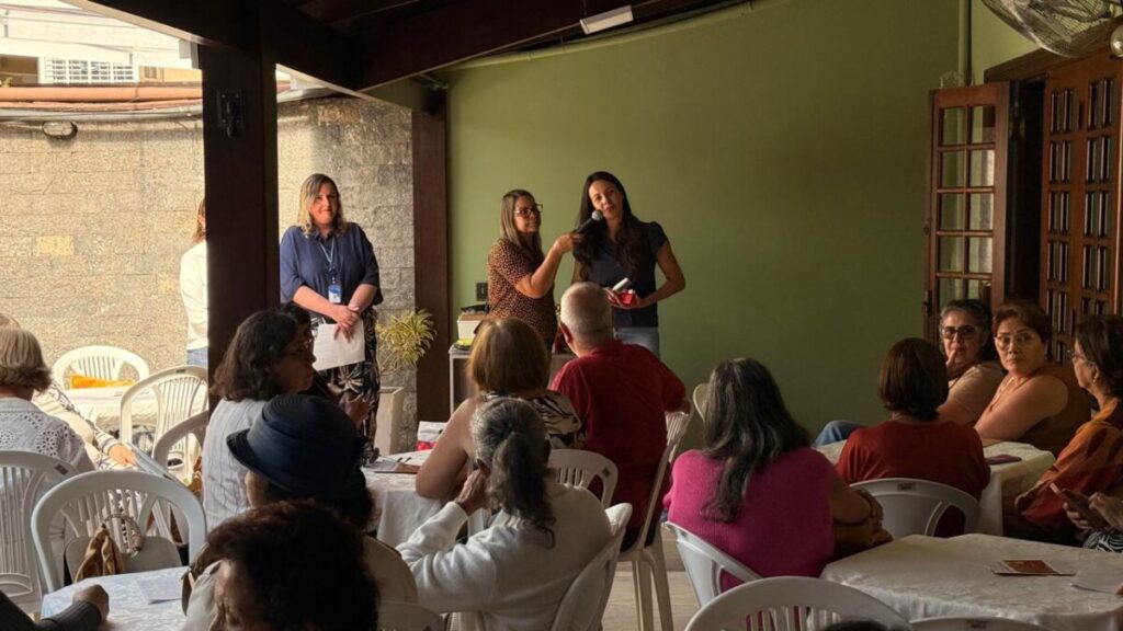 Em seguida, a nutricionista presente destacou a campanha do Setembro Vermelho, mês dedicado à conscientização e prevenção das doenças cardiovasculares. A profissional alertou para os fatores de risco modificáveis, como má alimentação, sedentarismo e estresse, além de reforçar a importância da adoção de hábitos saudáveis para evitar complicações futuras.
