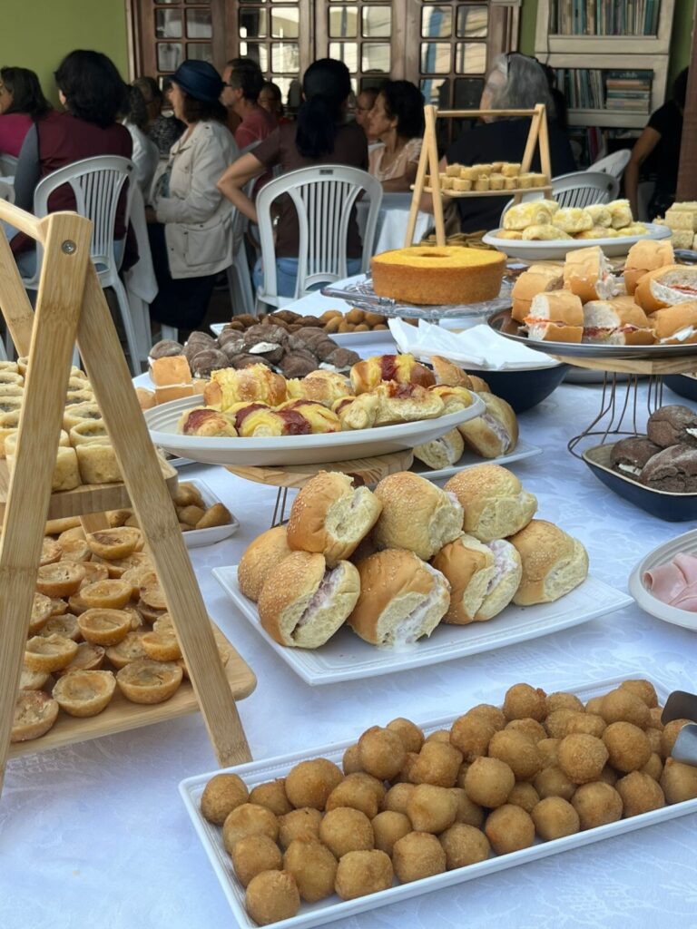 Após os momentos de orientação e cuidado com a saúde, os participantes se reuniram para celebrar os aniversariantes do mês, com direito a parabéns e uma farta mesa de café da manhã com variedade e sabor.
